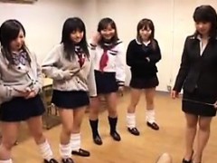 Naughty Oriental girls in short skirts put their sexy legs
